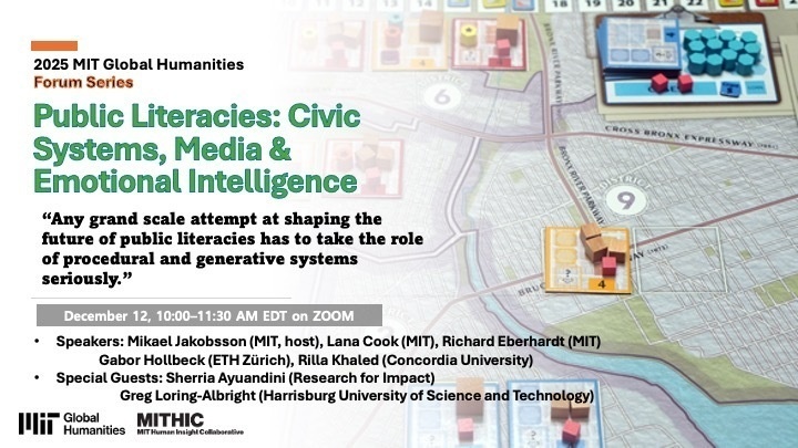 5th MIT Global Humanities Forum on “Public Literacies: Civic Systems, Media & Emotional Intelligence” on Dec 12 (online)