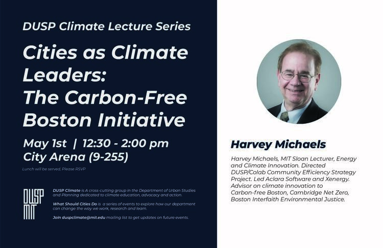 Harvey Michaels, a MIT Sloan School of Management lecturer, will lead a discussion about the City of Boston's Carbon-Free Boston Initiative, focusing on how the MIT Community could collaborate on future iterations.
