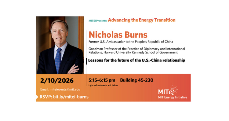 Please join the MIT Energy Initiative as we welcome Nicholas Burns, former U.S. Ambassador to the People’s Republic of China and now the Goodman Professor of the Practice of Diplomacy and International Relations at Harvard University’s Kennedy School of Government.