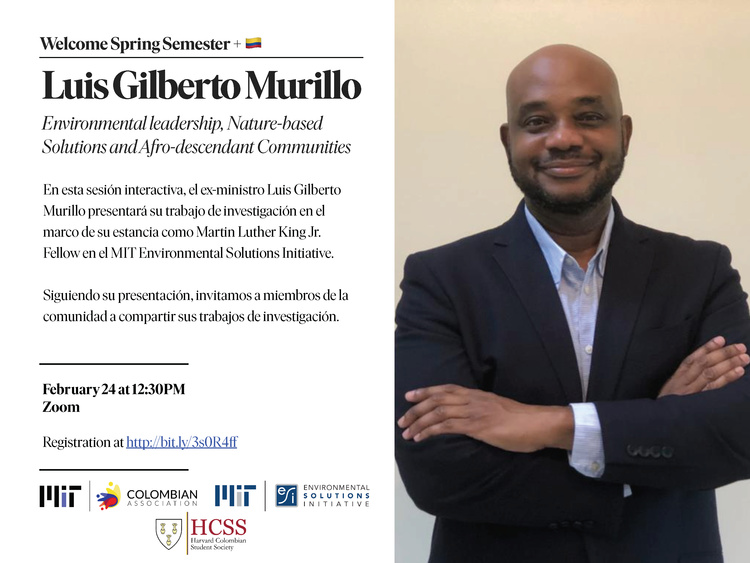 En esta sesión interactiva, el ex-ministro Luis Gilberto Murillo presentará su trabajo de investigación en el marco de su estancia como Martin Luther King Jr. Fellow en el MIT Environmental Solutions Initiative. Siguiendo su presentación, invitamos a miembros de la comunidad a compartir sus trabajos de investigación.